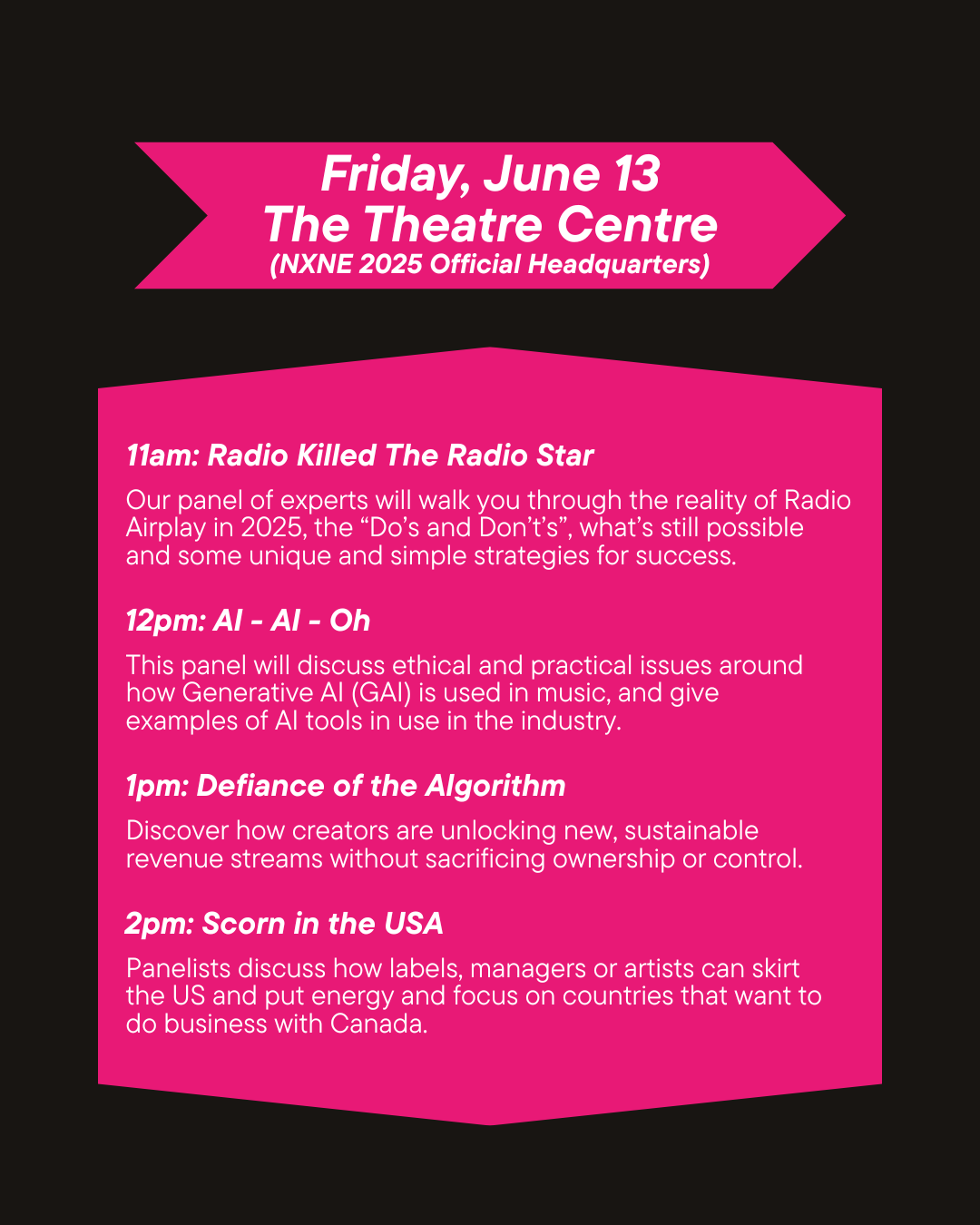 NXNE 2025 HIGHLIGHTS 2025 SCHEDULE Wednesday, June 11 Thursday, June 12 Friday, June 13 NXNE 2025 NEXT LEVEL Panels Saturday, June 14 NXNE 2025 NEXT LEVEL Panels Sunday, June 15 See you next year!