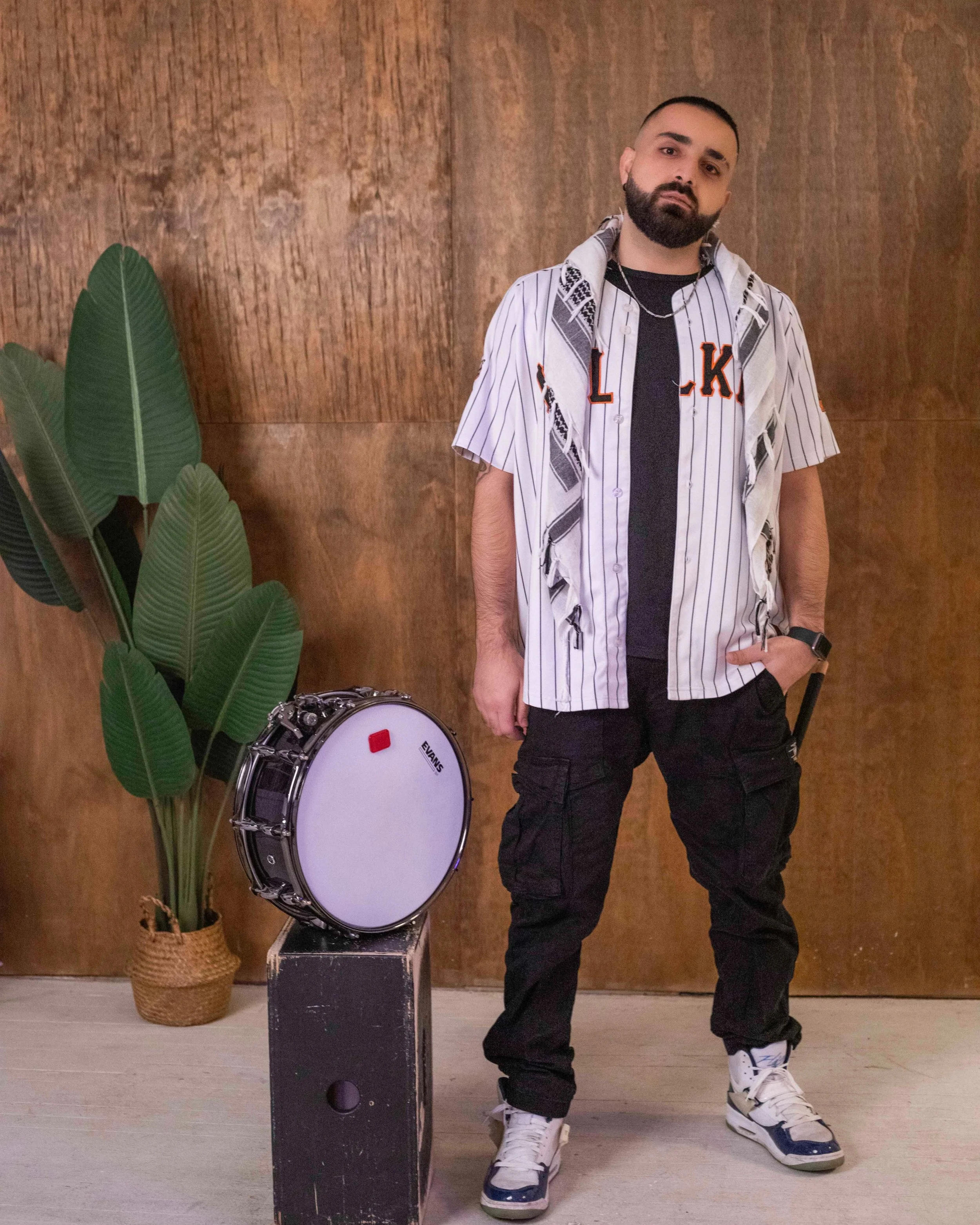 Sam-r is a Canadian artist of Lebanese-Syrian heritage, blending the raw storytelling of hip-hop with the soul of blues. Known for his rare combination of rapping and drumming, and his unique style of storytelling, his music reflects the struggles and triumphs of his immigrant experience.