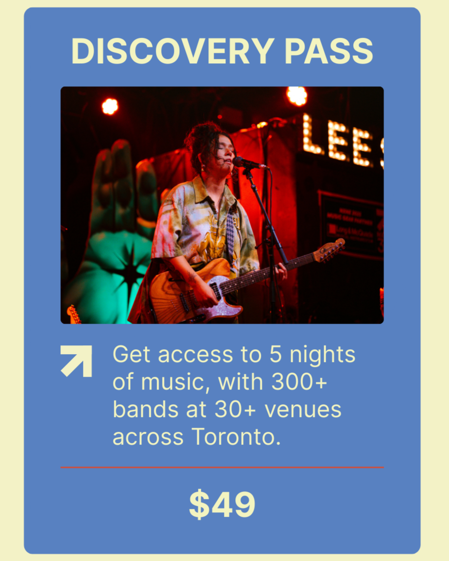 When you purchase a NXNE Pass on Showpass, you will receive a digital ticket. This year, we’ve created one-of-a-kind RFID wristbands to make the festival experience even smoother! These can be picked up at NXNE Artist House or another designated location from June 10-14, 2026.